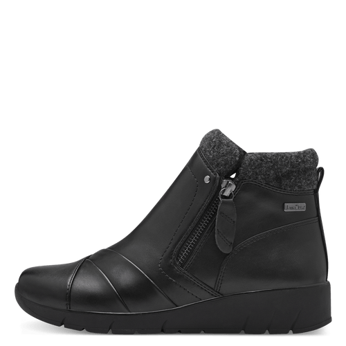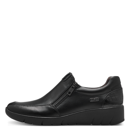 Jana Ladies Black Zip Low Wedge Shoe: 24663-41