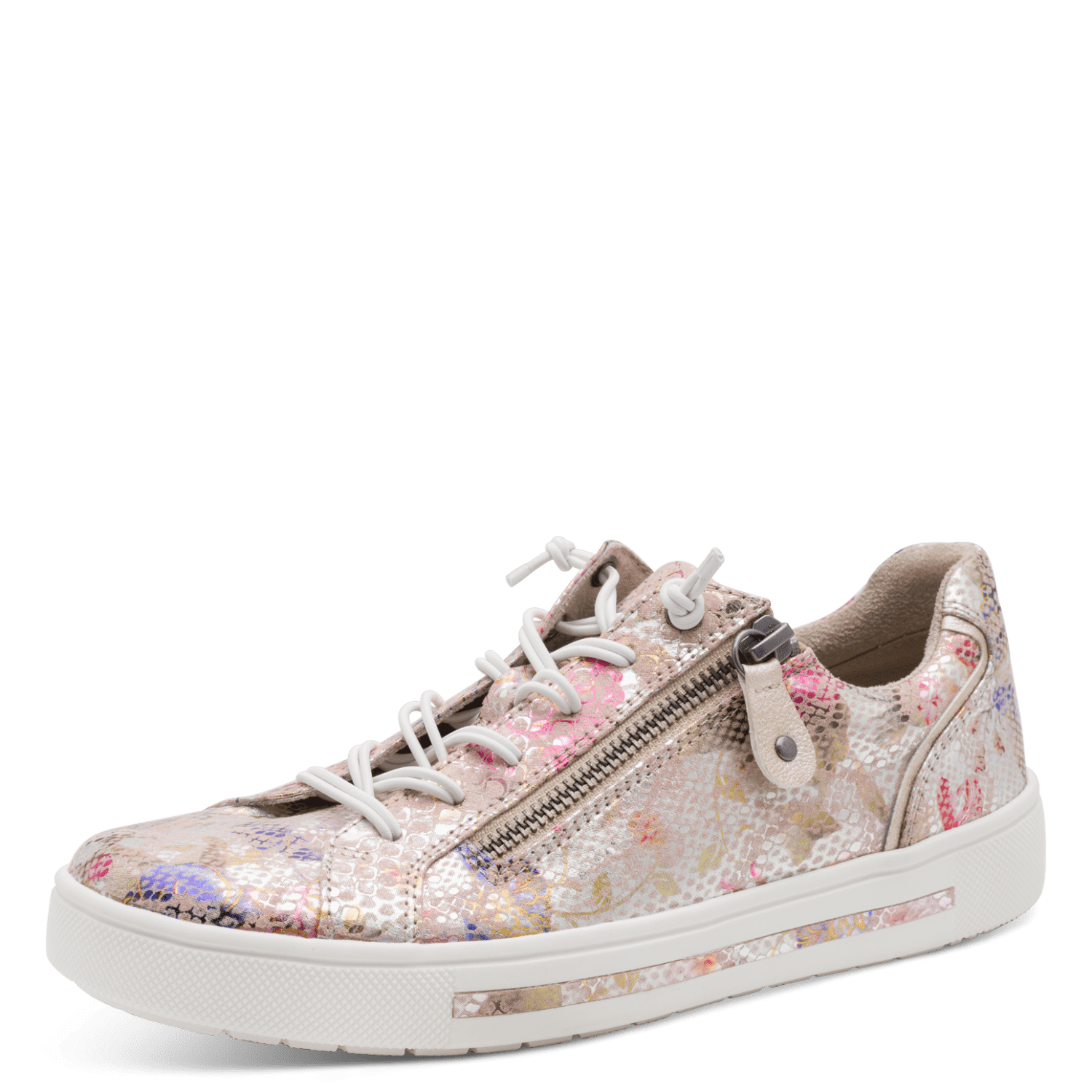 Jana ladies multi-colour flat lace-up trainer with side zip.