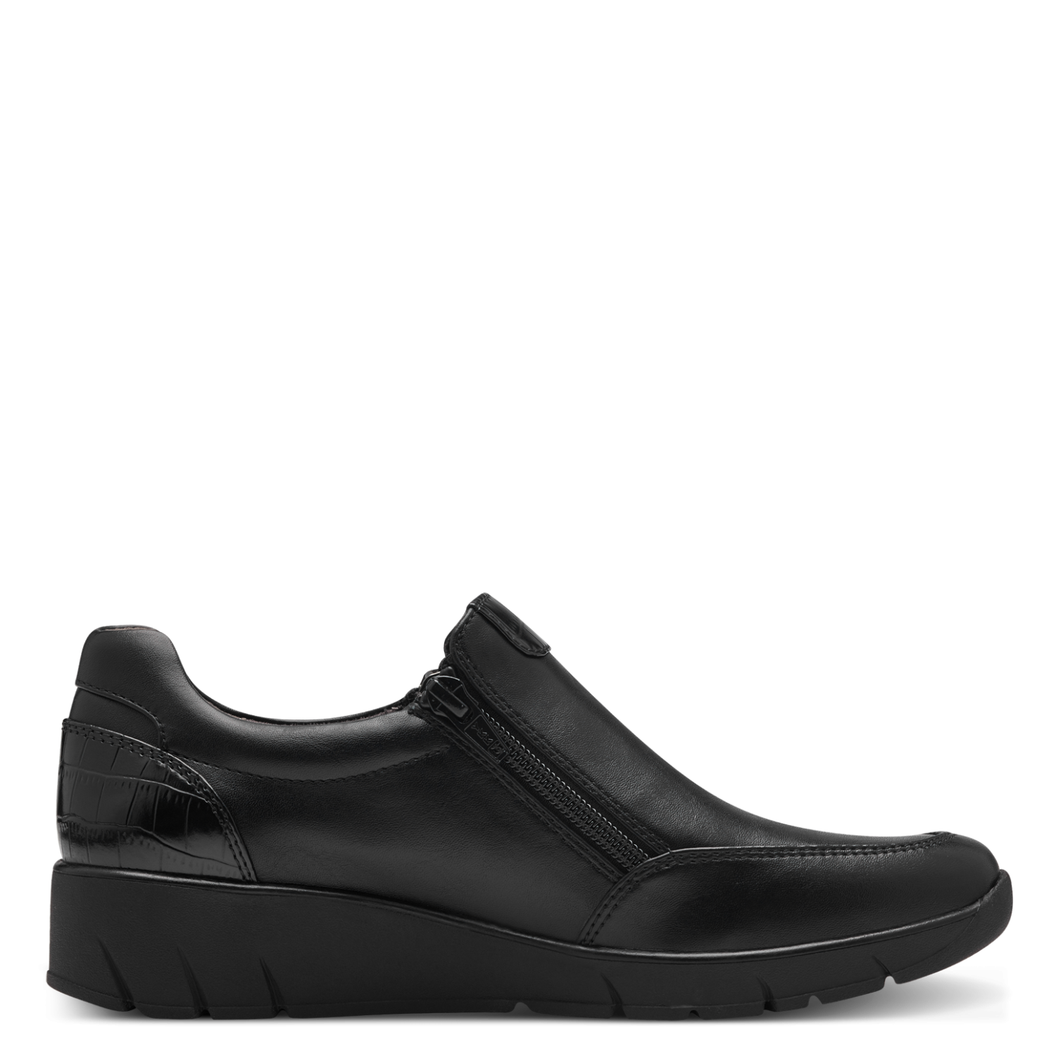 Jana Ladies Black Zip Low Wedge Shoe: 24663-41