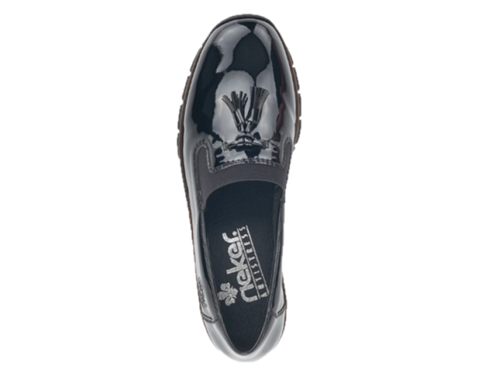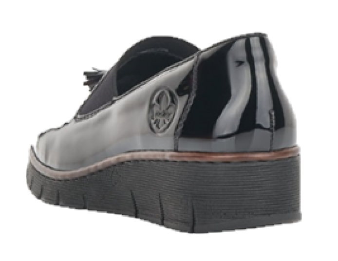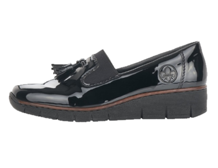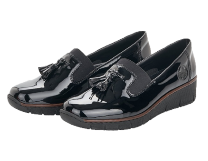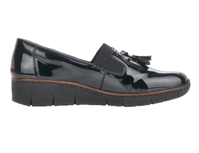 • Load image into Gallery viewer, Rieker Ladies Black Patent Slip-On Shoe