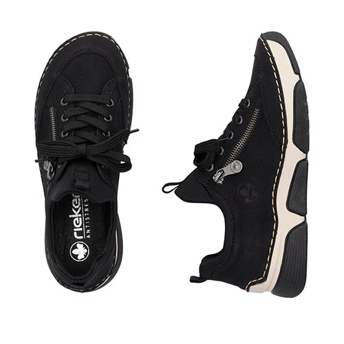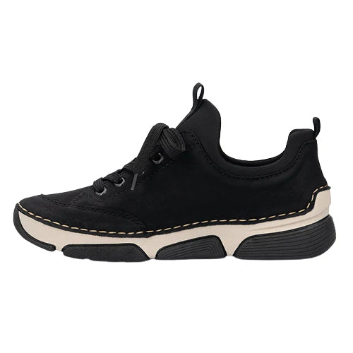 Rieker ladies black casual lace-up trainer. Width F 1/2