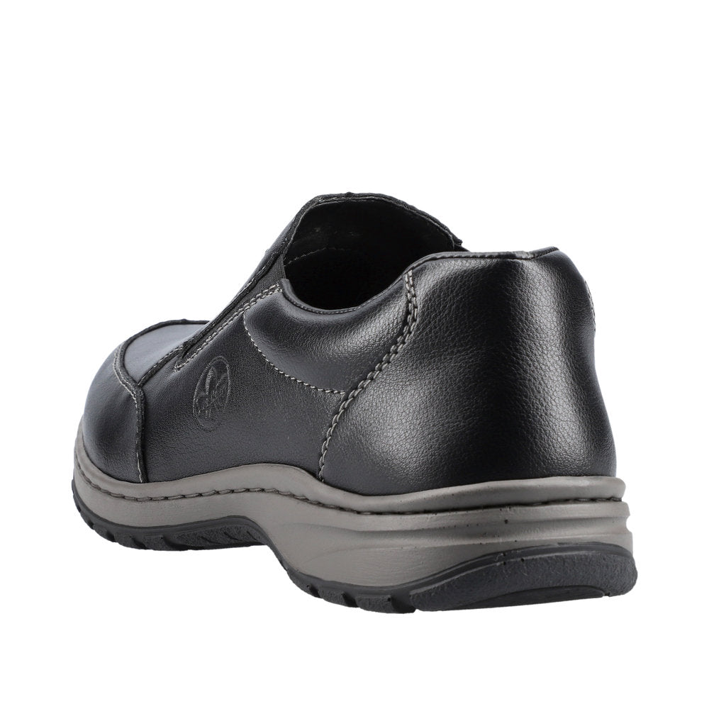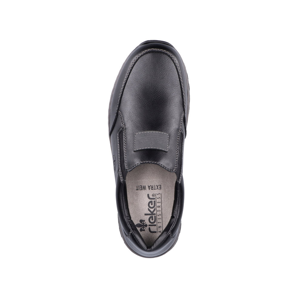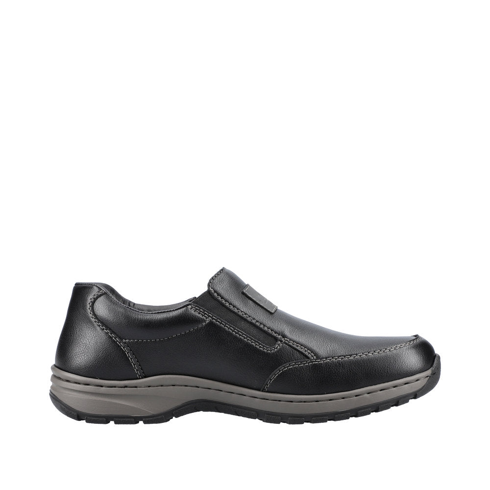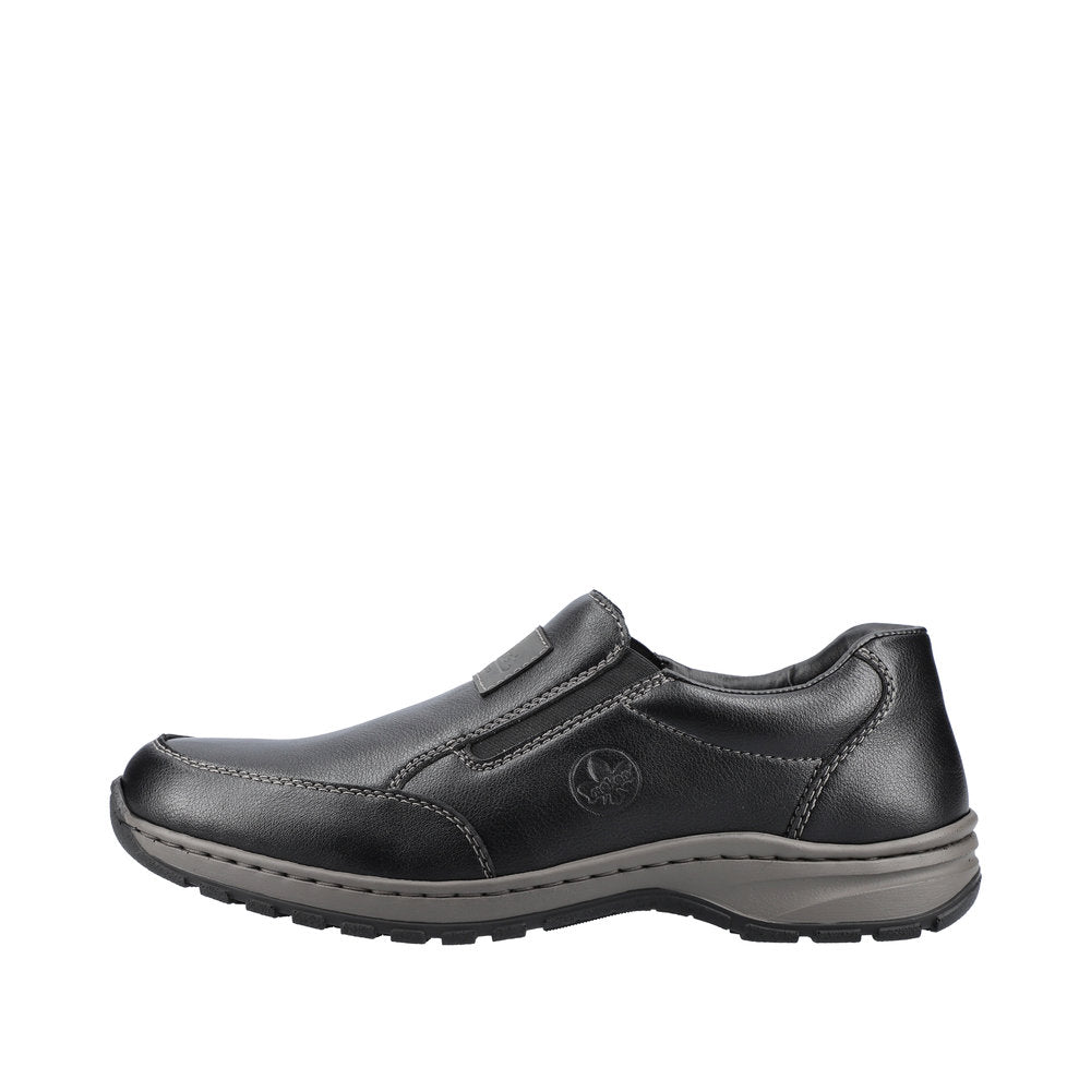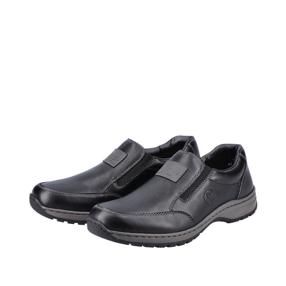 The classic men's slip-on shoe made of black imitation leather has a high potential to become your new favourite shoe in the coming autumn/winter season. Thanks to its wide cut and removable insole, your toes have a little more space. The striking, yet discreet design makes it versatile to combine and complements your outfits both in leisure time and in professional life.