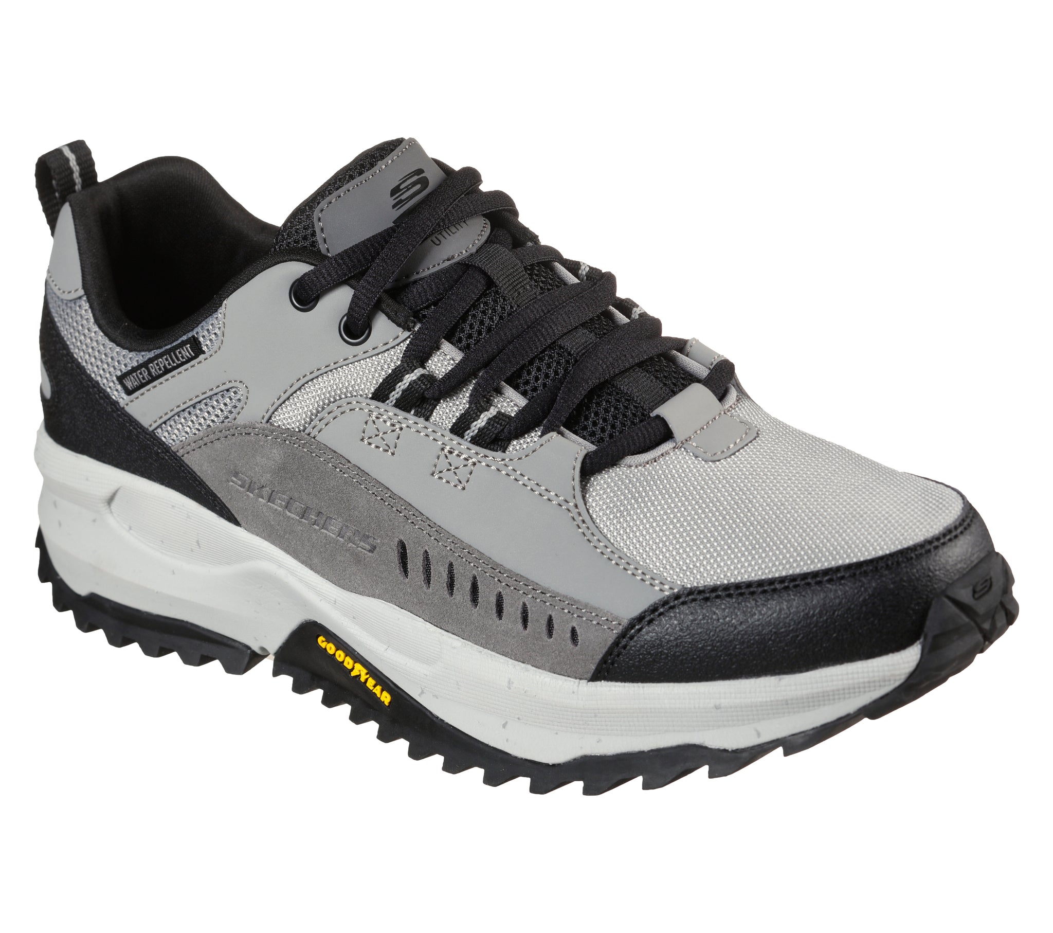 Take on the great outdoors in cushioned comfort with the Skechers Bionic Trail - Road Sector. This all-terrain hiking and trail running shoe features a lightweight water repellent suede and synthetic mesh upper, cushioned Air-Cooled Memory Foam insole and a durable Goodyear rubber traction outsole.